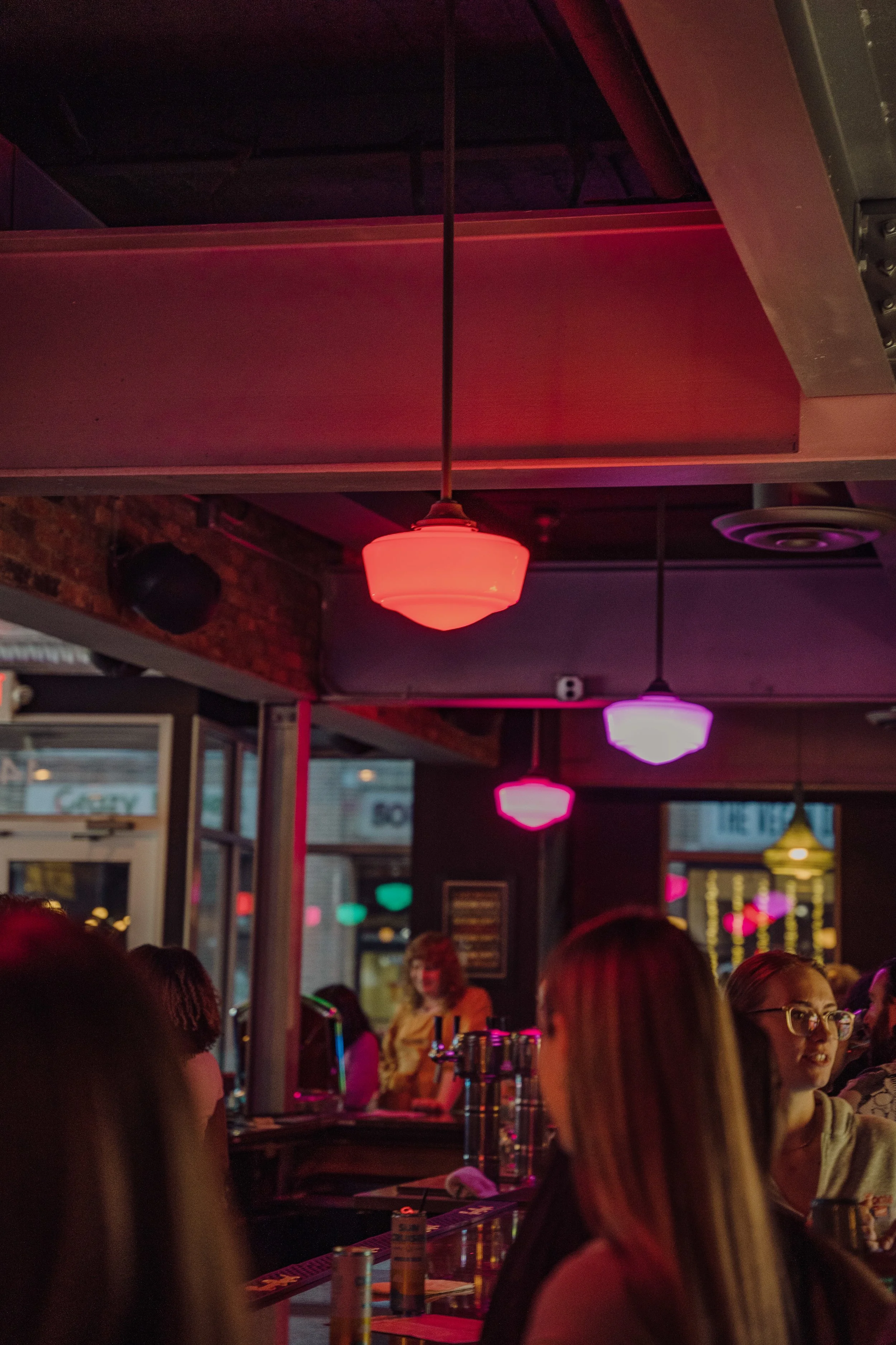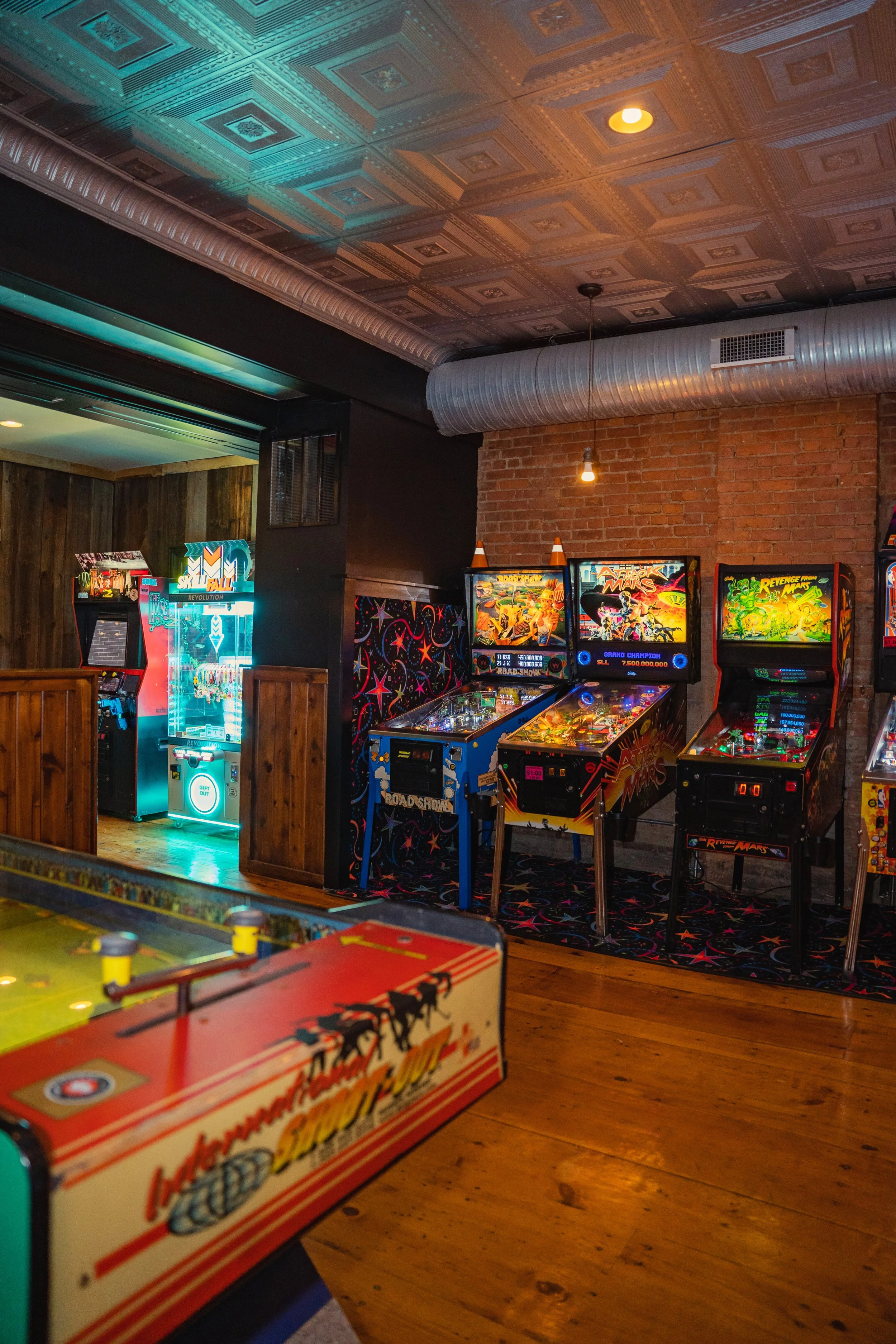 Step into a neon-soaked nostalgia trip at The Arcade on Detroit, a retro arcade bar bringing the electric energy of the '80s and '90s into the now. Classic pixelated icons like Pac-Man, Galaga, Street Fighter II, and more line the walls alongside blacklight murals and synthwave beats, setting the perfect throwback vibe.